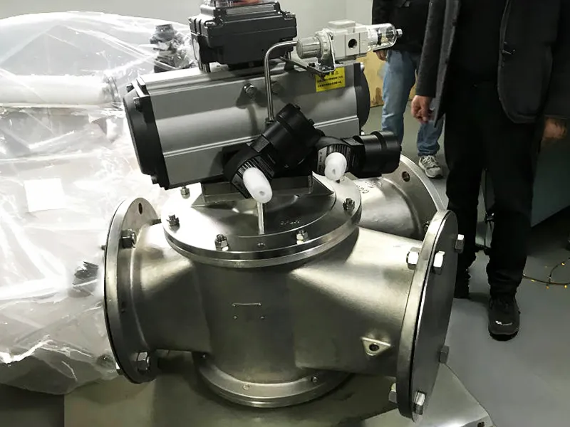 The diverter valve is designed to redirect the flow of powdered or granular materials by mechanically shifting the valve core or rotor through rotation, sliding, or flapping actions. This adjustment modifies the internal passageway to route material from a main pipeline to one of several branch lines, enabling flexible control over the flow direction during pneumatic or mechanical conveying.