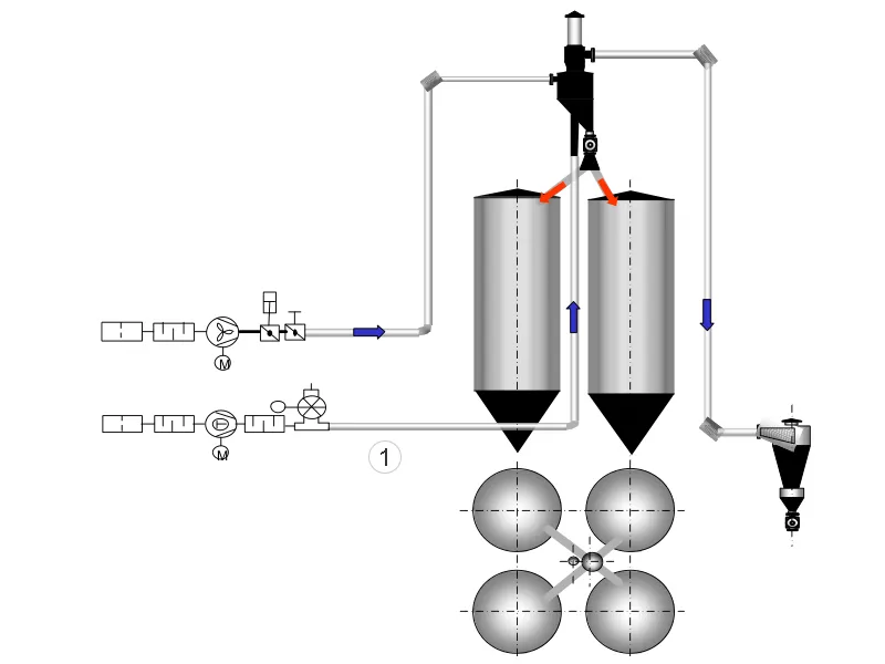 In bulk-solids handling systems, the degassing silo is used to extract hazardous gases emitted from stored materials, including volatile olefins like cyclohexane, octene, and ethylene. It helps maintain a safe working environment and supports downstream processes.