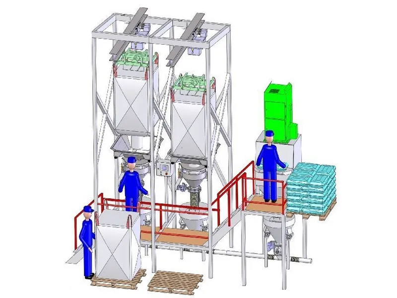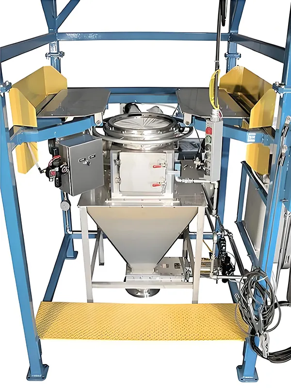 The bag break station, also known as a dust-free bag dump station, is designed for the manual unloading of both small bags and bulk bags (ton bags). Operators manually open and empty bags into the feed hopper, where gravity assists in transferring materials into the storage bin. The entire process is enclosed, supported by an integrated dust removal system comprising the station body, filter, and dust extraction fan to prevent dust emission and maintain a clean working environment.